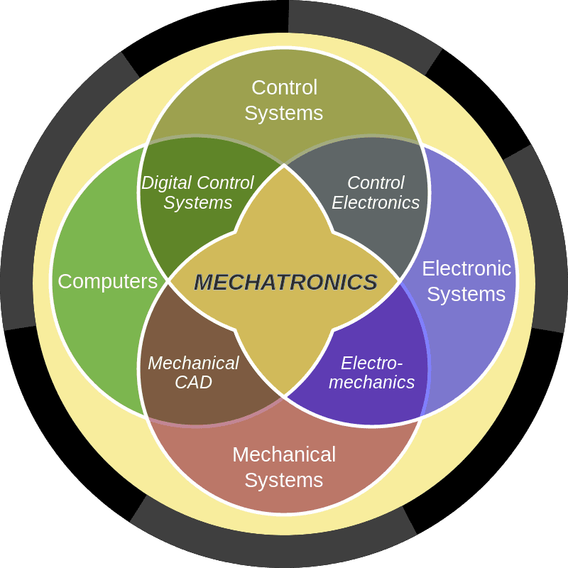 Mechatronics represents the holistically unified fusion of mechanical engineering, electronics, computer engineering, telecommunications engineering, systems engineering and control engineering; promoting synergistic integration for optimal performance.